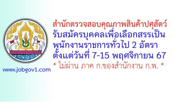 สำนักพัฒนาระบบและรับรองมาตรฐานสินค้าปศุสัตว์ กรมปศุสัตว์ รับสมัครบุคคลเพื่อเลือกสรรเป็นพนักงานราชการทั่วไป 2 อัตรา