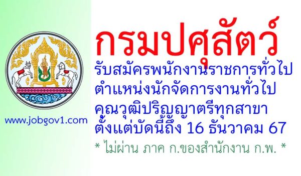 กรมปศุสัตว์ รับสมัครพนักงานราชการทั่วไป ตำแหน่งนักจัดการงานทั่วไป ตั้งแต่บัดนี้ถึง 16 ธันวาคม 2567