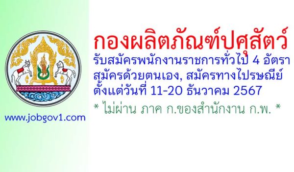 กองผลิตภัณฑ์ปศุสัตว์ รับสมัครบุคคลเพื่อเลือกสรรเป็นพนักงานราชการทั่วไป 4 อัตรา ตั้งแต่วันที่ 11-20 ธันวาคม 2567