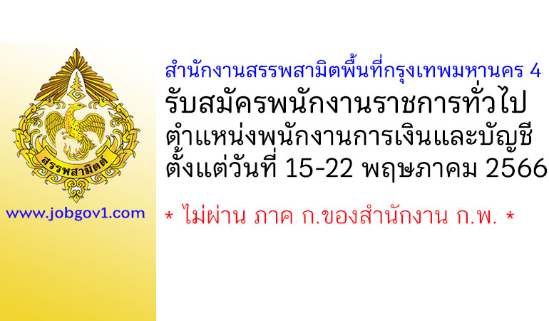 สำนักงานสรรพสามิตพื้นที่กรุงเทพมหานคร 4 รับสมัครพนักงานราชการทั่วไป ตำแหน่งพนักงานการเงินและบัญชี