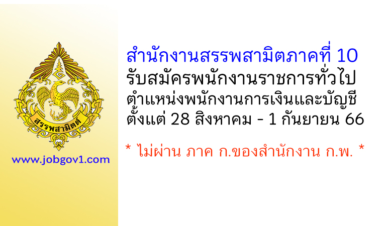สำนักงานสรรพสามิตภาคที่ 10 รับสมัครพนักงานราชการทั่วไป ตำแหน่งพนักงานการเงินและบัญชี ตั้งแต่ 28 สิงหาคม – 1 กันยายน 2566