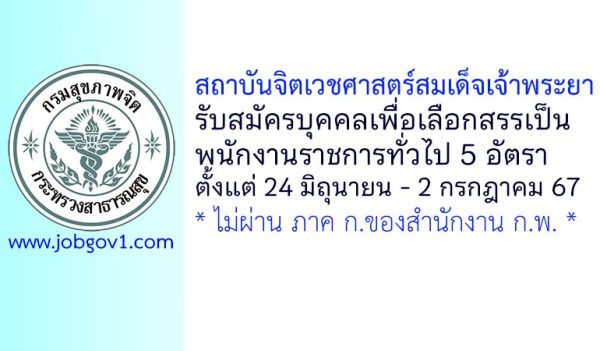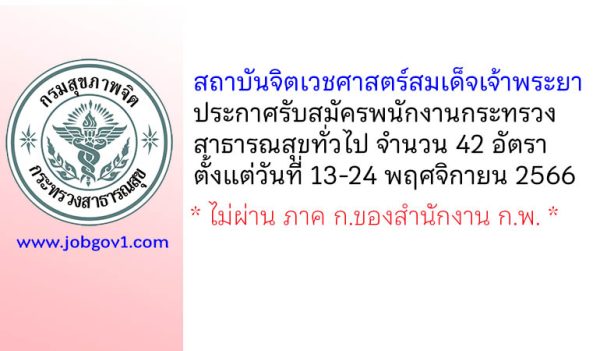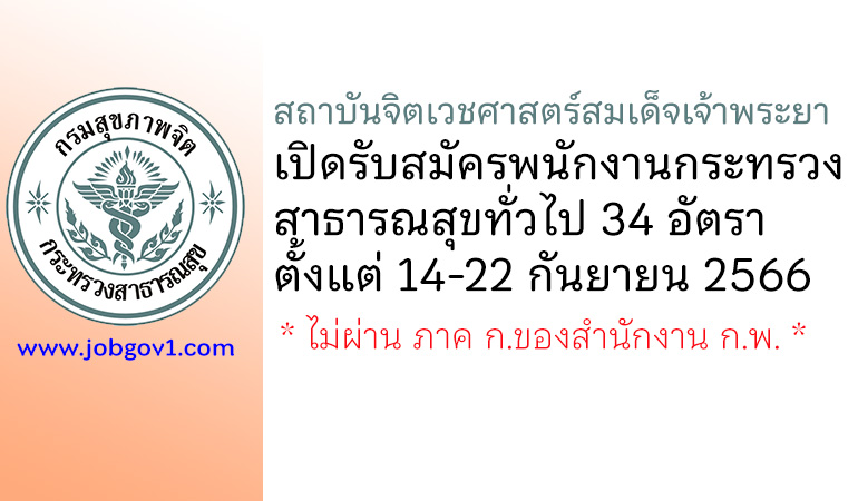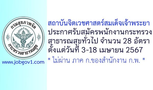 สถาบันจิตเวชศาสตร์สมเด็จเจ้าพระยา รับสมัครพนักงานราชการ และพนักงานกระทรวงสาธารณสุขทั่วไป 22 อัตรา ตั้งแต่ 26 สิงหาคม – 3 กันยายน 2567
