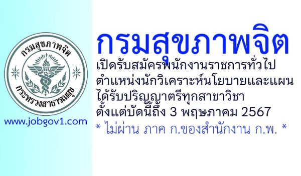 กรมสุขภาพจิต รับสมัครพนักงานราชการทั่วไป ตำแหน่งนักจิตวิทยา 3 อัตรา ตั้งแต่วันที่ 11-18 ตุลาคม 2567