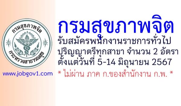 กรมสุขภาพจิต รับสมัครบุคคลเพื่อเลือกสรรเป็นพนักงานราชการทั่วไป 2 อัตรา ตั้งแต่วันที่ 13-20 ธันวาคม 2567