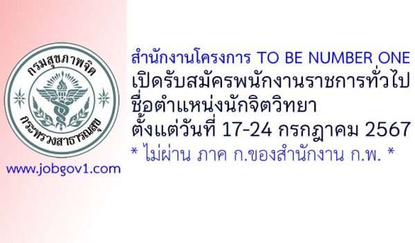 สำนักงานโครงการ TO BE NUMBER ONE รับสมัครพนักงานราชการทั่วไป ตำแหน่งนักจิตวิทยา ตั้งแต่วันที่ 17-24 กรกฎาคม 2567