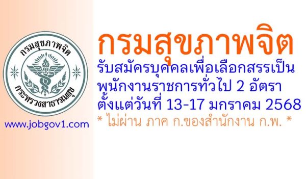 กรมสุขภาพจิต รับสมัครบุคคลเพื่อเลือกสรรเป็นพนักงานราชการทั่วไป 2 อัตรา ตั้งแต่วันที่ 13-19 สิงหาคม 2568