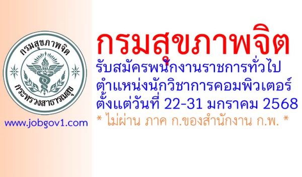กรมสุขภาพจิต รับสมัครพนักงานราชการทั่วไป ตำแหน่งนักวิชาการคอมพิวเตอร์ ตั้งแต่วันที่ 22-31 มกราคม 2568