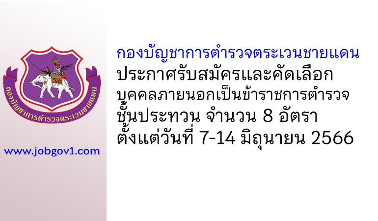 กองบัญชาการตำรวจตระเวนชายแดน รับสมัครและคัดเลือกบุคคลภายนอกเป็นข้าราชการตำรวจ ชั้นประทวน 8 อัตรา ตั้งแต่วันที่ 7-14 มิถุนายน 2566