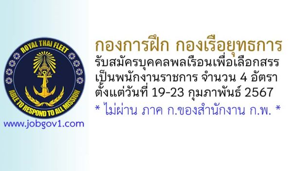 กองการฝึก กองเรือยุทธการ รับสมัครบุคคลพลเรือนเพื่อเลือกสรรเป็นพนักงานราชการ 4 อัตรา ตั้งแต่วันที่ 19-23 กุมภาพันธ์ 2567