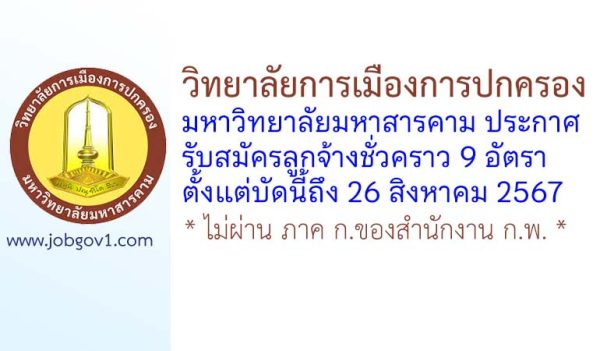 มหาวิทยาลัยมหาสารคาม รับสมัครลูกจ้างชั่วคราว สังกัดกองคลังและพัสดุ 3 อัตรา ตั้งแต่บัดนี้ถึง 27 สิงหาคม 2568