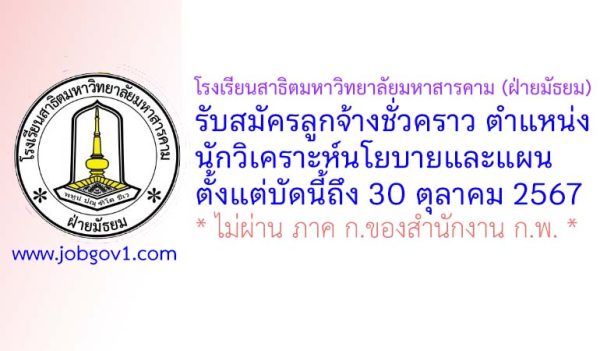 โรงเรียนสาธิตมหาวิทยาลัยมหาสารคาม (ฝ่ายมัธยม) รับสมัครลูกจ้างชั่วคราว 2 อัตรา