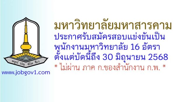 มหาวิทยาลัยมหาสารคาม รับสมัครสอบแข่งขันเป็นพนักงานมหาวิทยาลัย 16 อัตรา ตั้งแต่บัดนี้ถึง 30 มิถุนายน 2568