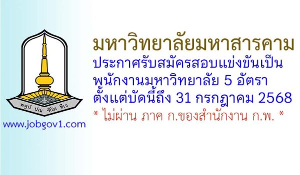 มหาวิทยาลัยมหาสารคาม รับสมัครพนักงานมหาวิทยาลัย 5 อัตรา ตั้งแต่บัดนี้ถึง 31 กรกฎาคม 2568