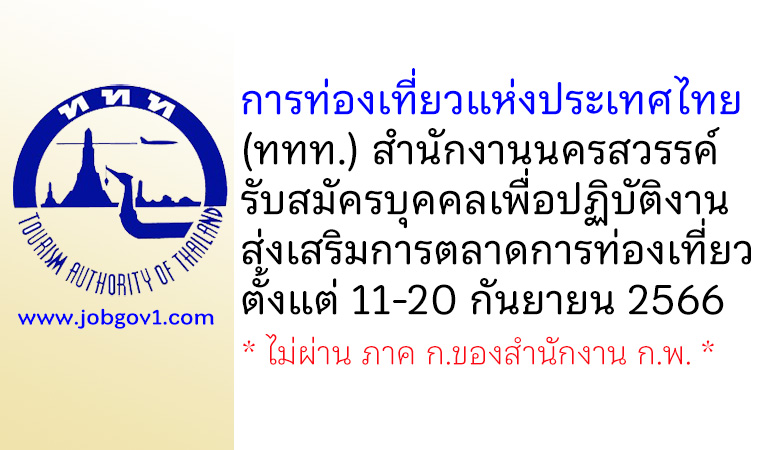 การท่องเที่ยวแห่งประเทศไทย (ททท.) สำนักงานนครสวรรค์ รับสมัครบุคคลเพื่อปฏิบัติงานส่งเสริมการตลาดการท่องเที่ยว ตั้งแต่วันที่ 11-20 กันยายน 2566