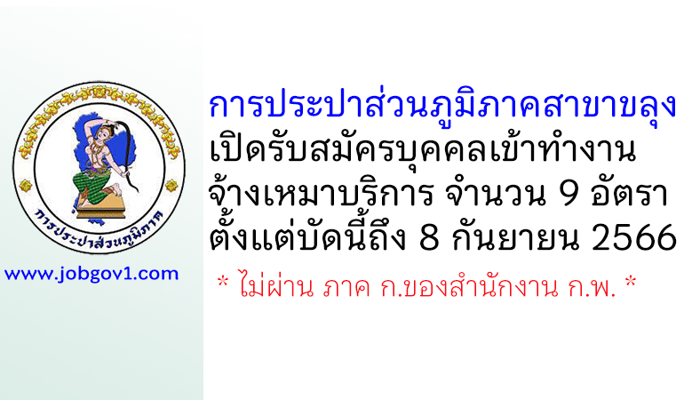 การประปาส่วนภูมิภาคสาขาขลุง รับสมัครบุคคลเข้าทำงานจ้างเหมาบริการ 9 อัตรา ตั้งแต่บัดนี้ถึง 8 กันยายน 2566