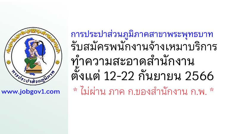 การประปาส่วนภูมิภาคสาขาพระพุทธบาท รับสมัครพนักงานจ้างเหมาบริการทำความสะอาดสำนักงาน ตั้งแต่วันที่ 12-22 กันยายน 2566