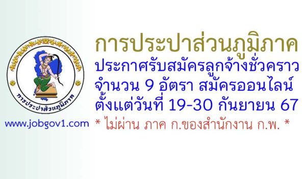 การประปาส่วนภูมิภาค รับสมัครลูกจ้างชั่วคราว 9 อัตรา ตั้งแต่วันที่ 19-30 กันยายน 2567