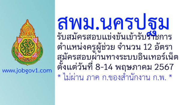 สพม.นครปฐม รับสมัครสอบแข่งขันเข้ารับราชการ ตำแหน่งครูผู้ช่วย 12 อัตรา ตั้งแต่วันที่ 8-14 พฤษภาคม 2567