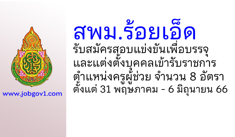สพม.ร้อยเอ็ด รับสมัครสอบแข่งขัน ตำแหน่งครูผู้ช่วย จำนวน 8 อัตรา ตั้งแต่ 31 พฤษภาคม – 6 มิถุนายน 2566