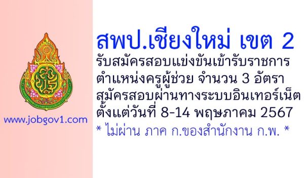 สพป.เชียงใหม่ เขต 2 รับสมัครสอบแข่งขันเข้ารับราชการ ตำแหน่งครูผู้ช่วย 3 อัตรา ตั้งแต่วันที่ 8-14 พฤษภาคม 2567