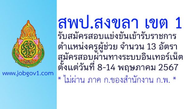 สพป.สงขลา เขต 1 รับสมัครสอบแข่งขันเข้ารับราชการ ตำแหน่งครูผู้ช่วย 13 อัตรา ตั้งแต่วันที่ 8-14 พฤษภาคม 2567