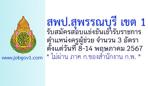 สพป.สุพรรณบุรี เขต 1 รับสมัครสอบแข่งขันเข้ารับราชการ ตำแหน่งครูผู้ช่วย 3 อัตรา ตั้งแต่วันที่ 8-14 พฤษภาคม 2567