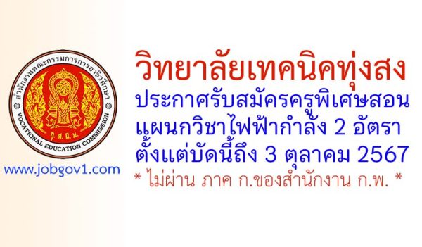 วิทยาลัยเทคนิคสุราษฎร์ธานี รับสมัครลูกจ้างชั่วคราว ตำแหน่งครูพิเศษสอน (ช่างไฟฟ้ากำลัง) 2 อัตรา
