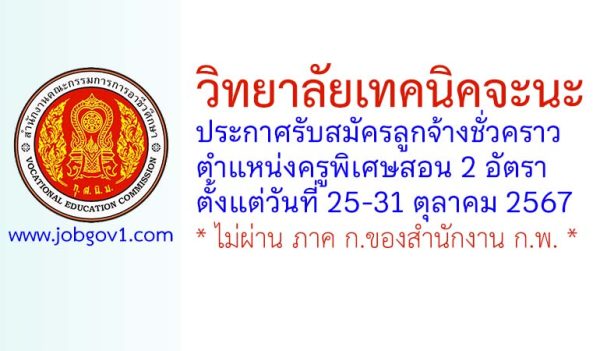 วิทยาลัยเทคนิคจะนะ รับสมัครลูกจ้างชั่วคราว ตำแหน่งครูพิเศษสอน 2 อัตรา ตั้งแต่วันที่ 25-31 ตุลาคม 2567