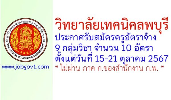 วิทยาลัยเทคนิคลพบุรี รับสมัครครูอัตราจ้าง จำนวน 10 อัตรา ตั้งแต่วันที่ 15-21 ตุลาคม 2567
