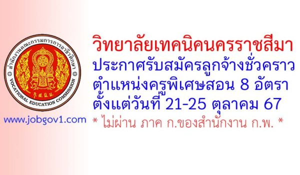 วิทยาลัยเทคนิคนครราชสีมา รับสมัครลูกจ้างชั่วคราว ตำแหน่งครูพิเศษสอน จำนวน 8 อัตรา ตั้งแต่วันที่ 21-25 ตุลาคม 2567