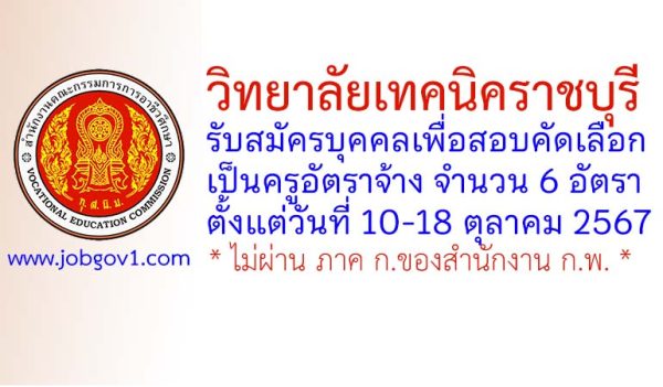 วิทยาลัยเทคนิคราชบุรี รับสมัครครูอัตราจ้าง 6 อัตรา ตั้งแต่วันที่ 10-18 ตุลาคม 2567