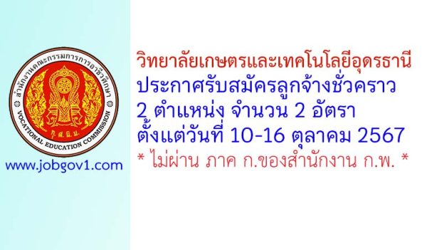 วิทยาลัยเกษตรและเทคโนโลยีอุดรธานี รับสมัครลูกจ้างชั่วคราว 2 อัตรา ตั้งแต่วันที่ 10-16 ตุลาคม 2567
