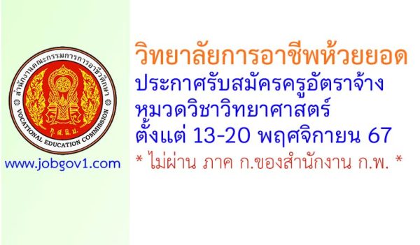 วิทยาลัยการอาชีพห้วยยอด รับสมัครครูอัตราจ้าง หมวดวิชาวิทยาศาสตร์ ตั้งแต่วันที่ 13-20 พฤศจิกายน 2567