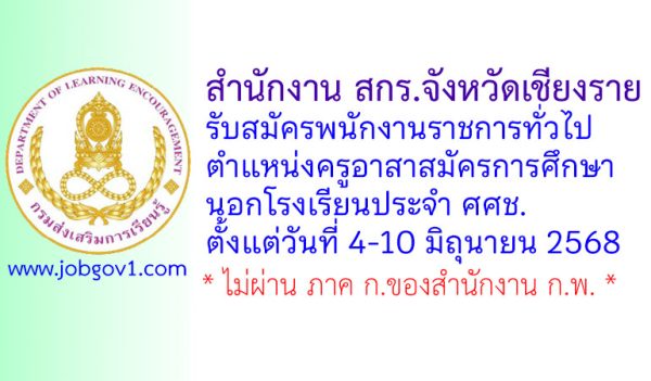 สำนักงาน สกร.จังหวัดเชียงราย รับสมัครพนักงานราชการทั่วไป ตำแหน่งครูอาสาสมัครการศึกษานอกโรงเรียนประจำ ศศช. ตั้งแต่วันที่ 4-10 มิถุนายน 2568