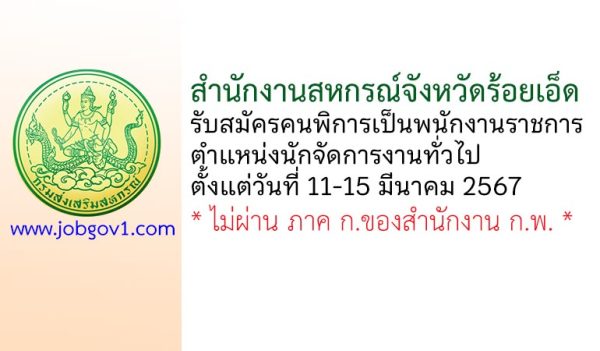 สำนักงานสหกรณ์จังหวัดราชบุรี รับสมัครคนพิการเป็นพนักงานราชการทั่วไป ตำแหน่งเจ้าพนักงานการเงินและบัญชี ตั้งแต่วันที่ 7-13 พฤศจิกายน 2567