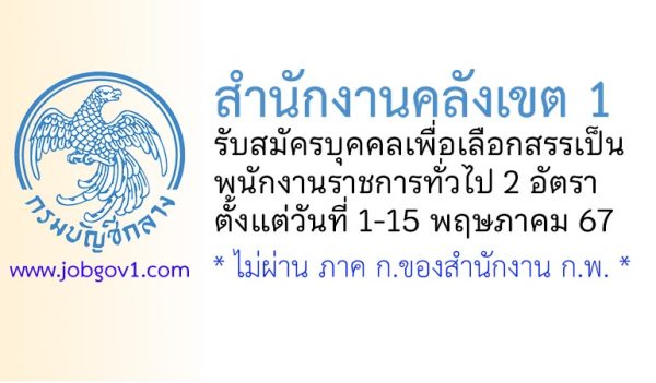 สำนักงานคลังเขต 1 รับสมัครบุคคลเพื่อเลือกสรรเป็นพนักงานราชการทั่วไป 2 อัตรา ตั้งแต่วันที่ 1-15 พฤษภาคม 2567