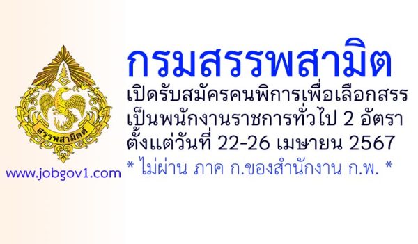กรมสรรพสามิต รับสมัครคนพิการเพื่อเลือกสรรเป็นพนักงานราชการทั่วไป 2 อัตรา ตั้งแต่วันที่ 22-26 เมษายน 2567