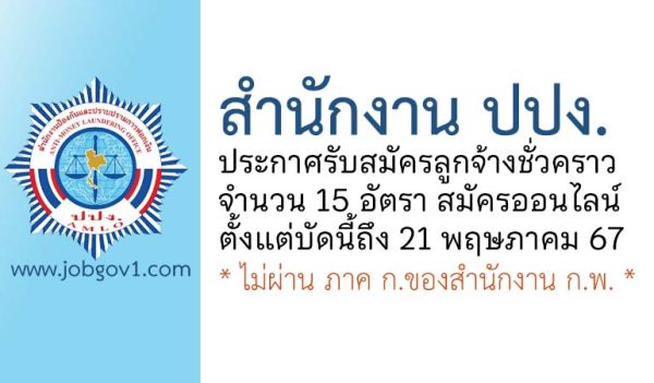 สำนักงานป้องกันและปราบปรามการฟอกเงิน รับสมัครลูกจ้างชั่วคราว 15 อัตรา