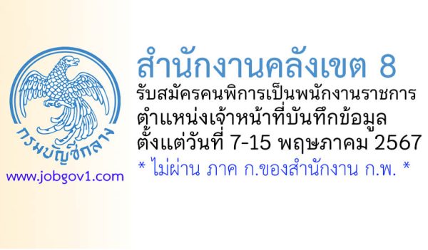 สำนักงานคลังเขต 8 รับสมัครคนพิการเป็นพนักงานราชการ ตำแหน่งเจ้าหน้าที่บันทึกข้อมูล ตั้งแต่วันที่ 7-15 พฤษภาคม 2567