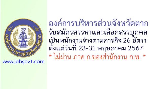 องค์การบริหารส่วนจังหวัดตาก รับสมัครสรรหาและเลือกสรรบุคคลเป็นพนักงานจ้างตามภารกิจ 26 อัตรา ตั้งแต่วันที่ 23-31 พฤษภาคม 2567