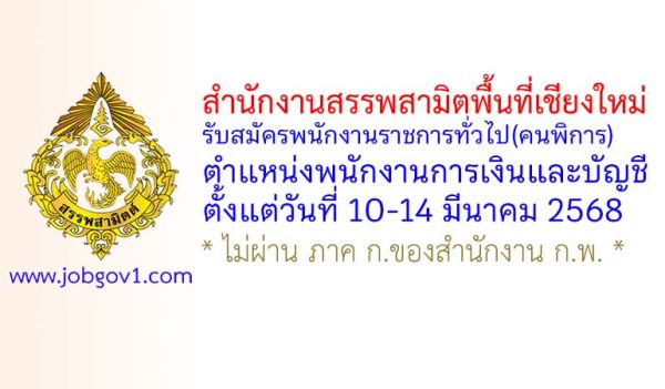 สำนักงานสรรพสามิตพื้นที่เชียงใหม่ รับสมัครพนักงานราชการทั่วไป(คนพิการ) ตำแหน่งพนักงานการเงินและบัญชี ตั้งแต่วันที่ 10-14 มีนาคม 2568