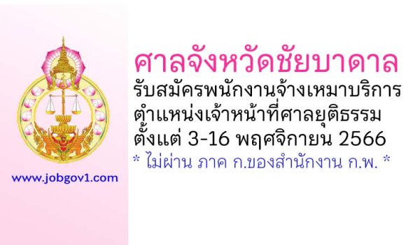 ศาลจังหวัดชัยบาดาล รับสมัครพนักงานจ้างเหมาบริการ ตำแหน่งเจ้าหน้าที่ศาลยุติธรรม ตั้งแต่วันที่ 3-16 พฤศจิกายน 2566