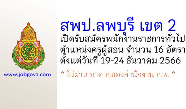 สพป.ลพบุรี เขต 2 รับสมัครพนักงานราชการทั่วไป ตำแหน่งครูผู้สอน 16 อัตรา ตั้งแต่วันที่ 19-24 ธันวาคม 2566