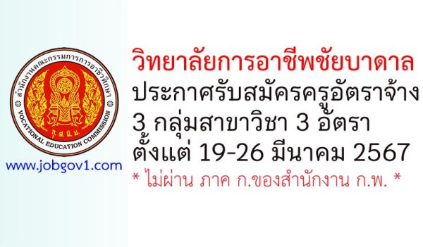 วิทยาลัยการอาชีพชัยบาดาล รับสมัครครูอัตราจ้าง 3 อัตรา ตั้งแต่วันที่ 19-26 มีนาคม 2567