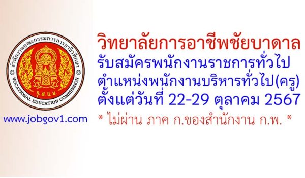 วิทยาลัยการอาชีพชัยบาดาล รับสมัครพนักงานราชการทั่วไป ตำแหน่งพนักงานบริหารทั่วไป(ครู) ตั้งแต่วันที่ 22-29 ตุลาคม 2567