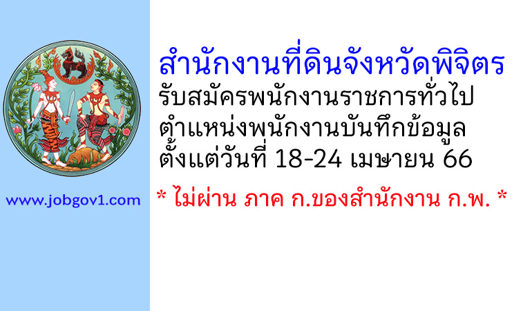 สำนักงานที่ดินจังหวัดพิจิตร รับสมัครพนักงานราชการทั่วไป ตำแหน่งพนักงานบันทึกข้อมูล ตั้งแต่วันที่ 18-24 เมษายน 2566