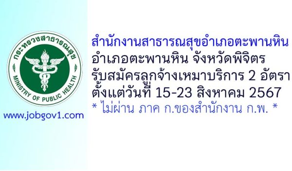 สำนักงานสาธารณสุขอำเภอตะพานหิน รับสมัครลูกจ้างเหมาบริการ 2 อัตรา ตั้งแต่วันที่ 15-23 สิงหาคม 2567