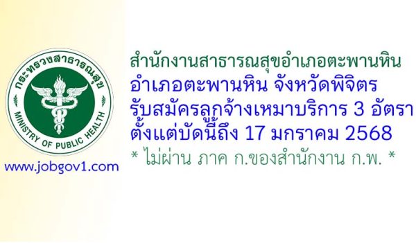 สำนักงานสาธารณสุขอำเภอตะพานหิน รับสมัครลูกจ้างเหมาบริการ 3 อัตรา ตั้งแต่บัดนี้ถึง 17 มกราคม 2568
