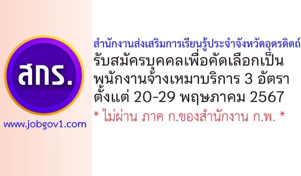สำนักงานส่งเสริมการเรียนรู้ประจำจังหวัดอุตรดิตถ์ รับสมัครพนักงานจ้างเหมาบริการ 3 อัตรา ตั้งแต่วันที่ 20-29 พฤษภาคม 2567