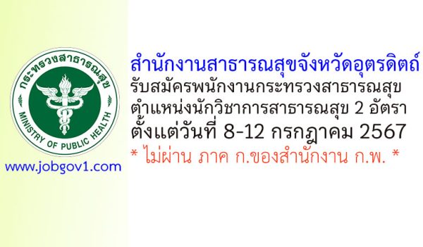 สสจ.อุตรดิตถ์ รับสมัครพนักงานกระทรวงสาธารณสุขทั่วไป ตำแหน่งนักวิชาการสาธารณสุข 2 อัตรา ตั้งแต่วันที่ 8-12 กรกฎาคม 2567